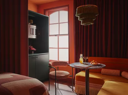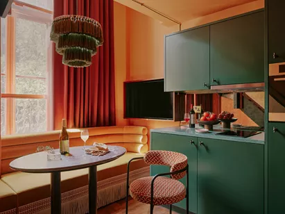 With 121 glamorous studios and social spaces housed within a reimagined Victorian townhouse you’ll be transported to London’s ‘golden era’ at Ember Locke, our apartment hotel in Kensington. Tuck into an NYC style pizza and selection of sides at EVE x Proper Slice, our on site pizza joint, or prepare something in your kitchen. Have a productive day in the coworking space, put in a session at the gym, or dine al fresco in the Garden.
